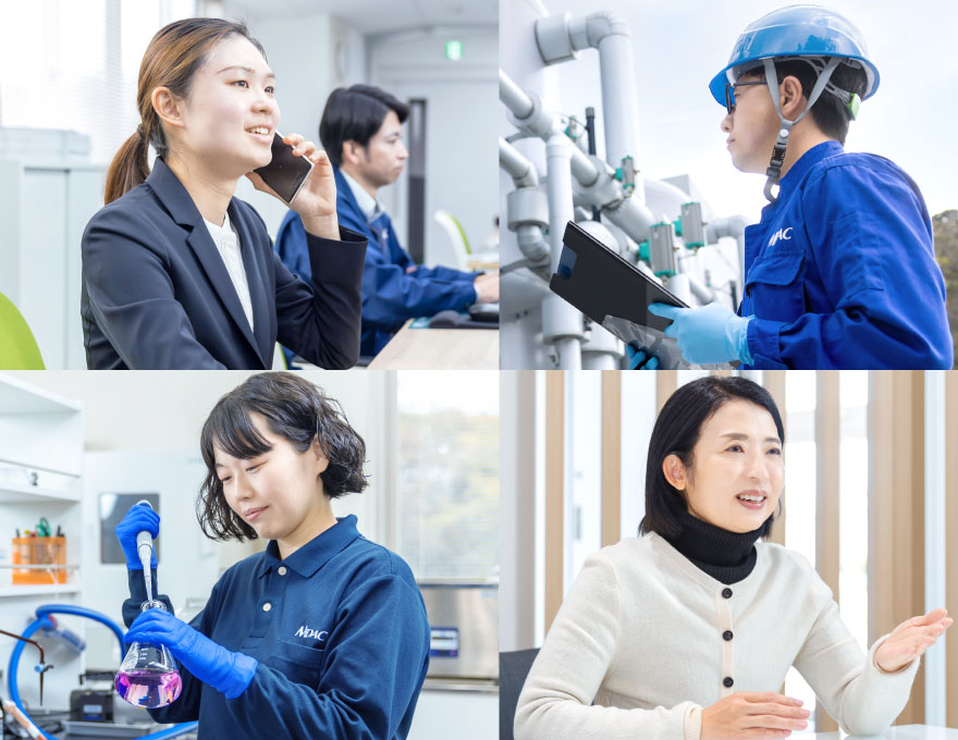お客様に寄り添う人、現場を動かす人、技術を追求する人、組織を支える人、
