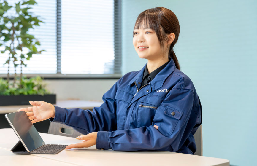 「地元・浜松に貢献したい」という軸で就活をする中、社会に不可欠な「エッセンシャルワーカー」として誇りを持てるミダックの事業に引かれ、入社を決めました。