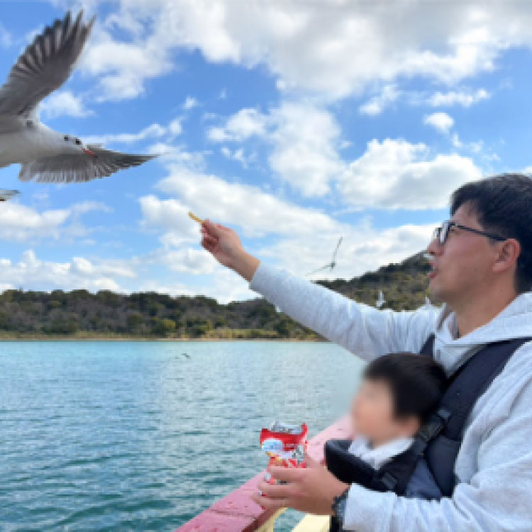 「旅先で乗船した遊覧船でのワンショット」
